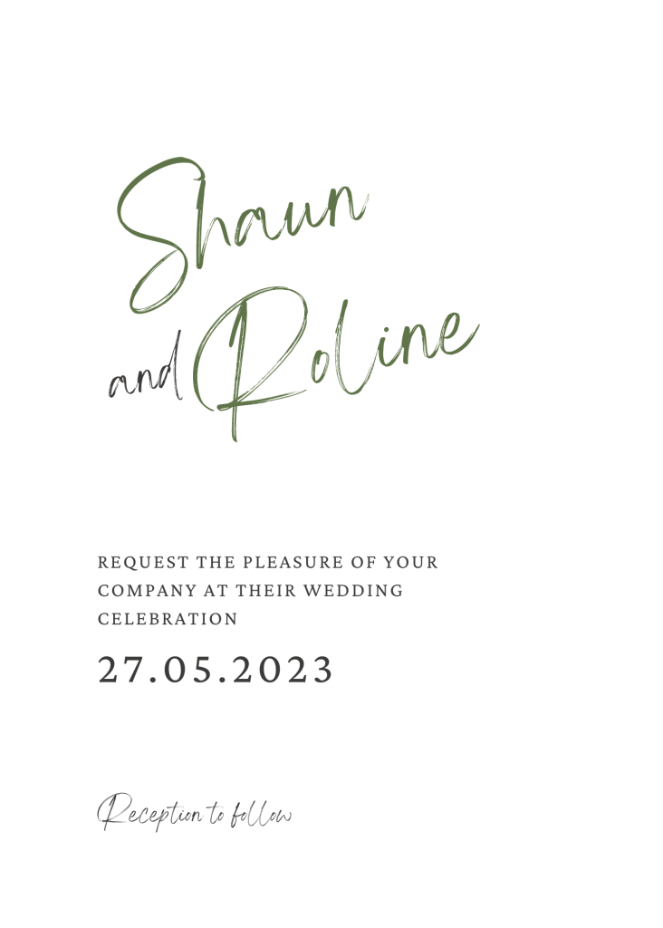 Since they met, Shaun and Roline have been living a dream. She fulfils him every day with joy, he wants to spend the rest of his life trying to give her the same happiness. Today, they decided to be happy together, forever. They’re now very moved to invite you to their wedding ceremony. See you very soon!